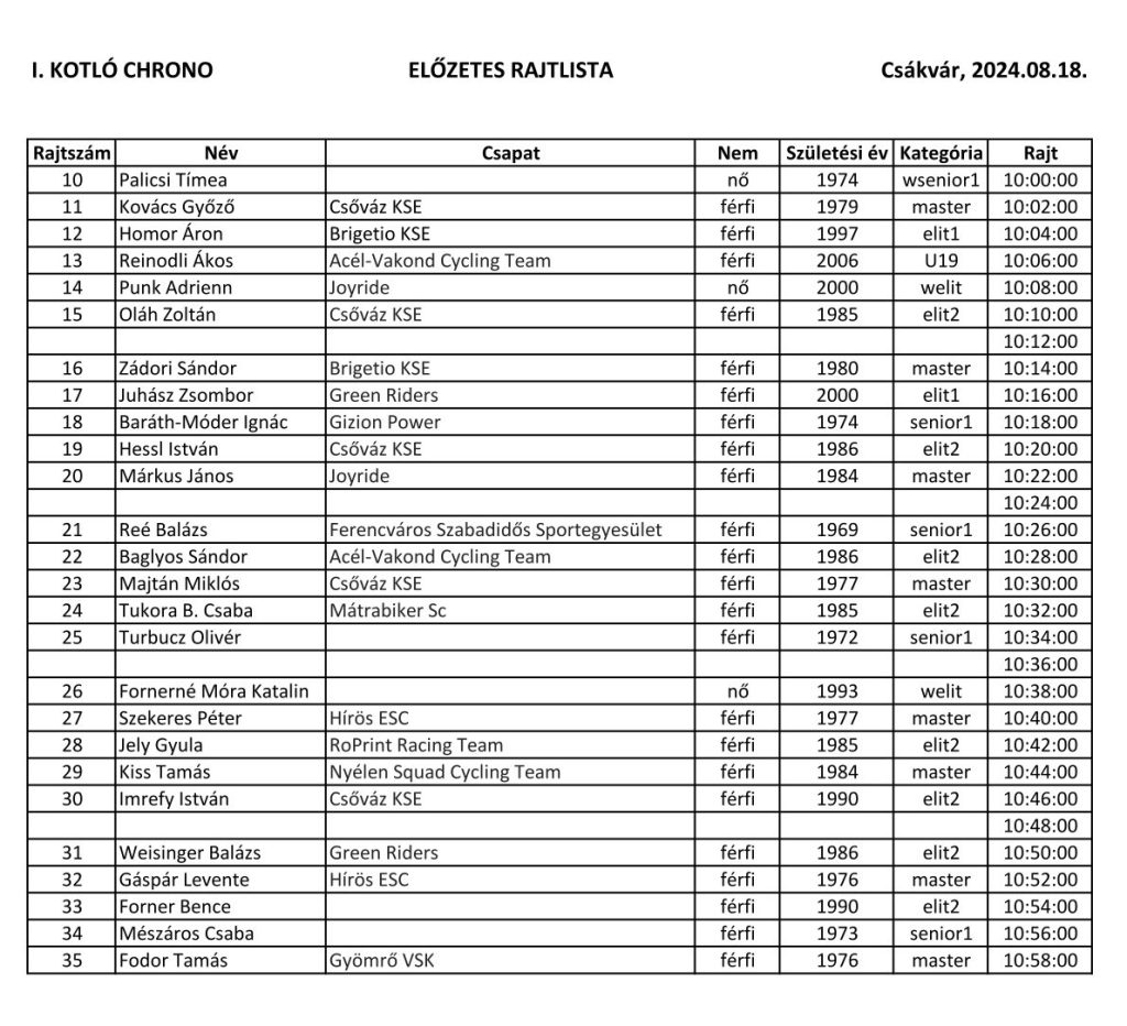 Helyszíni nevezés: 2024.08.18. 08:00 – 10:00