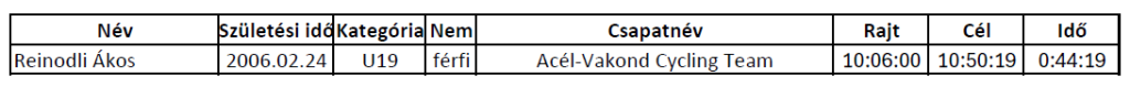 A nevezésnél a nevezett versenyző nevét kell megadni.